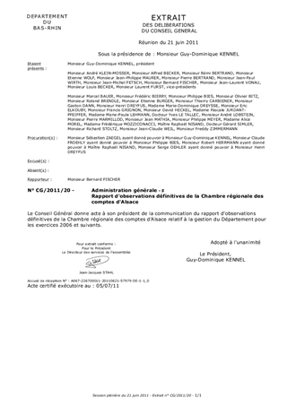 Le présent rapport porte à la connaissance des élus le Rapport d'observations définitives que la CRC d'Alsace a remis au Président à la suite de l'examen de gestion qu'elle a conduit en 2010 sur les exercices 2006 et suivants, ainsi que la réponse apportée par le Président à ce rapport.