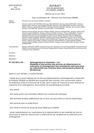 Modalités d'intervention des services du Département en urbanisme et aménagement hors prestations onéreuses pour les collectivités bas-rhinoises (hors communauté urbaine de Strasbourg)