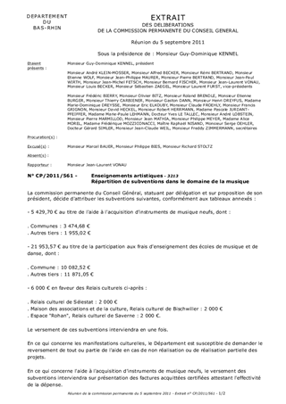 Ce rapport a pour objet de soumettre à votre approbation les propositions d'attribution de subventions pour l'acquisition d'instruments de musique neufs, le solde de la participation financière aux frais d'enseignement pour trois écoles de musique et de danse ainsi que l'attribution d'une aide complémentaire aux Relais Culturels de Saverne, Bischwiller et Sélestat pour la présentation de trois concerts décentralisés de l'Orchestre Philharmonique de Strasbourg (OPS) et parrainés par le Département dans le cadre du Festival MUSICA.