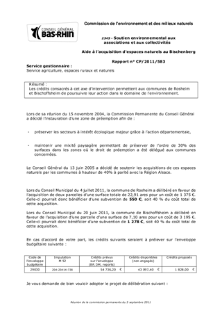 Aide à l'acquisition d'espaces naturels au Bischenberg