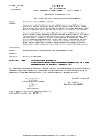 Répartition du Fonds départemental de péréquation de la taxe professionnelle du Bas-Rhin - Exercice 2010