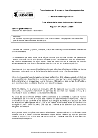 Ce rapport a pour objet lattribution dune aide en faveur des populations menacées par la famine dans la Corne de lAfrique.