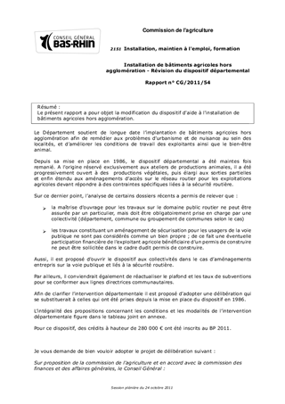Le présent rapport a pour objet la modification du dispositif d'aide à l'installation de bâtiments agricoles hors agglomération.