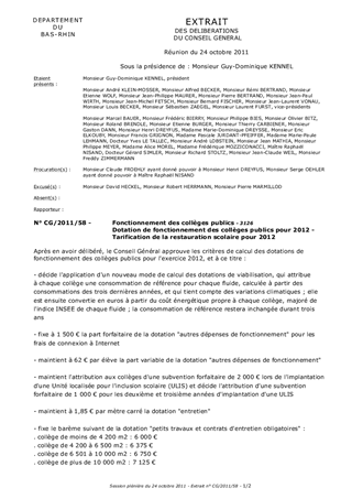 Dotation de fonctionnement des collèges publics pour 2012 - Tarification de la restauration scolaire pour 2012