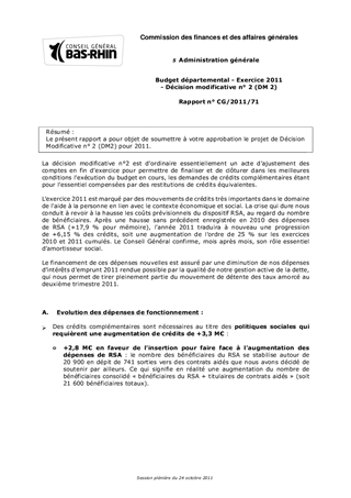 Le présent rapport a pour objet de soumettre à votre approbation le projet de Décision Modificative n° 2 (DM2) pour 2011.