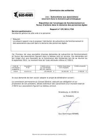 Le présent rapport vise à proposer l’attribution de subventions de fonctionnement à des associations œuvrant dans le domaine des personnes âgées.