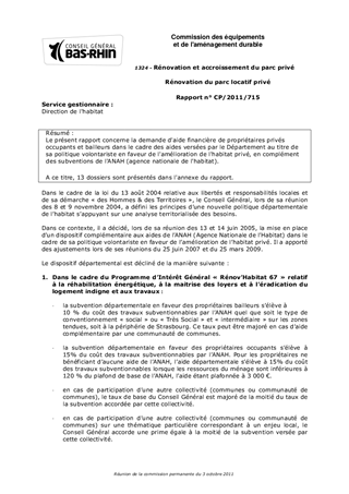 Le présent rapport concerne la demande d'aide financière de propriétaires privés occupants et bailleurs dans le cadre des aides versées par le Département au titre de sa politique volontariste en faveur de l'amélioration de l'habitat privé, en complément des subventions de l'ANAH (agence nationale de l'habitat). A ce titre, 13 dossiers sont présentés dans l'annexe du rapport.