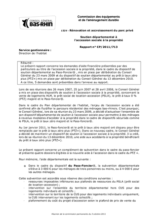 Le présent rapport concerne les demandes daide financière présentées par des particuliers au titre de laccession sociale à la propriété, dans le cadre du dispositif de soutien départemental au Pass-Foncier® , mis en place par délibération du Conseil Général du 23 mars 2009 et du dispositif de soutien départemental au prêt à taux zéro plus (PTZ+) mis en place par délibération du Conseil Général du 13 décembre 2010. A ce titre, 5 demandes sont présentées dans lannexe au rapport.