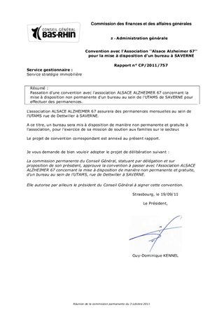 Convention avec l'Association ''Alsace Alzheimer 67'' pour la mise à disposition d'un bureau à SAVERNE