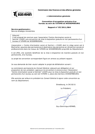 Convention d'occupation précaire d'un bureau au sein de l'UTAMS de WISSEMBOURG