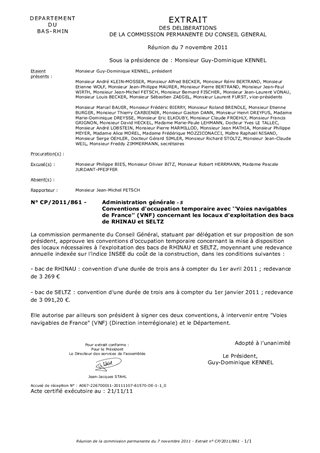 Il est proposé de conclure avec Voies Navigables de France (VNF) des conventions d'occupation temporaire des locaux nécessaires à l'exploitation par le Département des bacs de RHINAU et de SELTZ.
