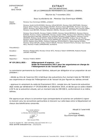 Le Conseil Général du Bas-Rhin accorde chaque année des aides financières aux organismes en charge de l'hébergement et de l'accueil de jour des personnes en grandes difficultés sociales.