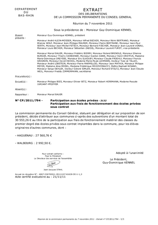 Participation aux frais de fonctionnement des écoles privées sous contrat