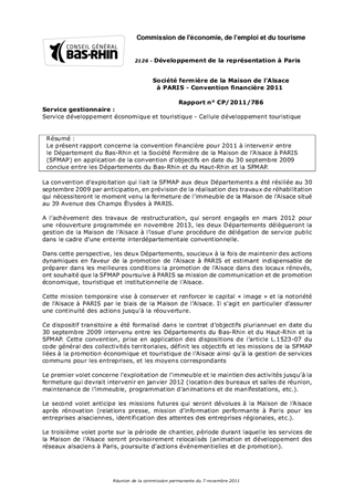 Société fermière de la Maison de lAlsace à PARIS - Convention financière 2011