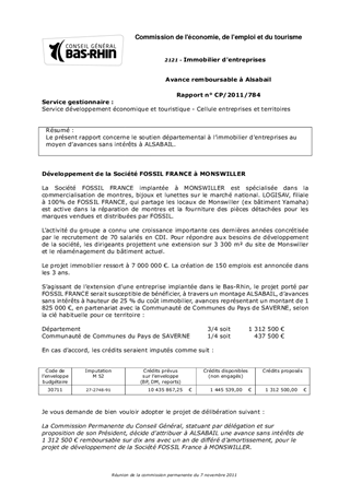 Le présent rapport concerne le soutien départemental à limmobilier dentreprises au moyen davances sans intérêts à ALSABAIL.