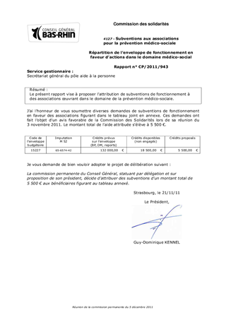 Le présent rapport vise à proposer lattribution de subventions de fonctionnement à des associations uvrant dans le domaine de la prévention médico-sociale.