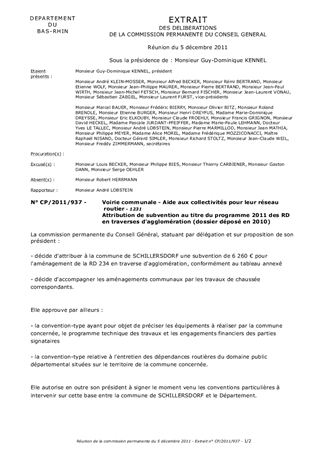 Attribution de subvention au titre du programme 2011 des RD en traverses d'agglomération (dossier déposé en 2010)