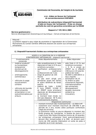 La présent rapport a pour objet de soumettre à l'approbation de la Commission Permanente du Conseil Général différents dossiers de soutien aux entreprises artisanales.