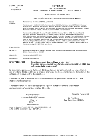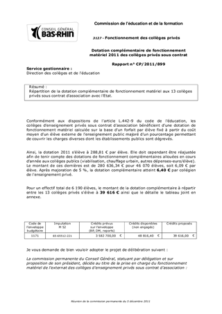 Dotation complémentaire de fonctionnement matériel 2011 des collèges privés sous contrat