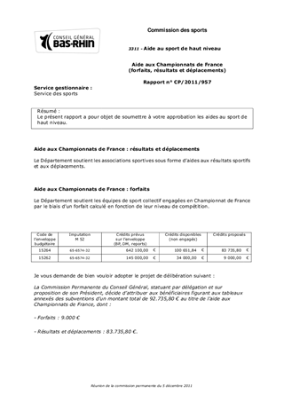 Le présent rapport a pour objet de soumettre à votre approbation les aides au sport de haut niveau.