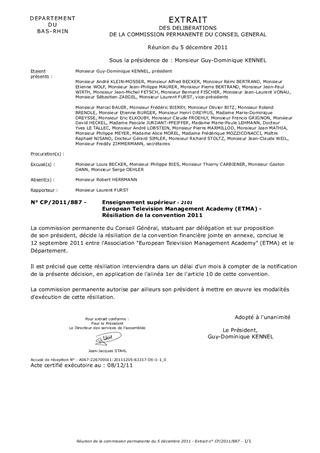 European Television Management Academy (ETMA) - Résiliation de la convention 2011