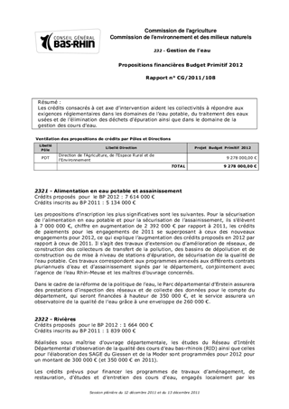 Les crédits consacrés à cet axe dintervention aident les collectivités à répondre aux exigences réglementaires dans les domaines de leau potable, du traitement des eaux usées et de lélimination des déchets dépuration ainsi que dans le domaine de la gestion des cours deau.