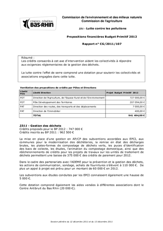 Les crédits consacrés à cet axe d'intervention aident les collectivités à répondre aux exigences réglementaires de la gestion des déchets. La lutte contre l'effet de serre comprend une dotation pour soutenir les collectivités et associations engagées dans cette lutte.