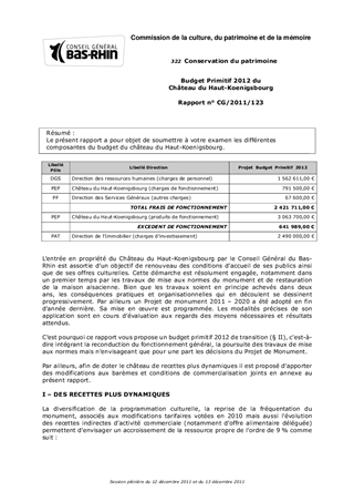 Budget Primitif 2012 du Château du Haut-Koenigsbourg
