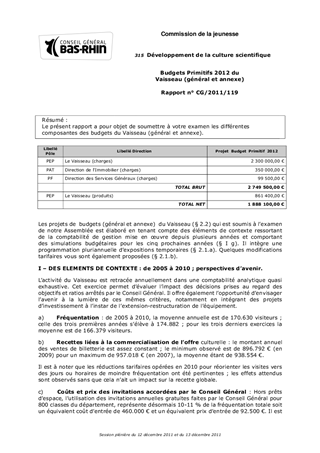Budgets Primitifs 2012 du Vaisseau (général et annexe)