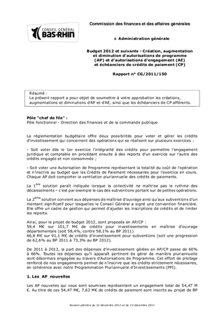 Budget 2012 et suivants - Création, augmentation et diminution d'autorisations de programme (AP) et d'autorisations d'engagement (AE) et échéanciers de crédits de paiement (CP)