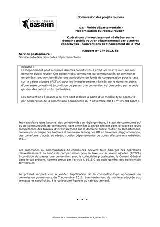 Opérations dinvestissement réalisées sur le domaine public routier départemental par dautres collectivités - Conventions de financement de la TVA
