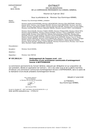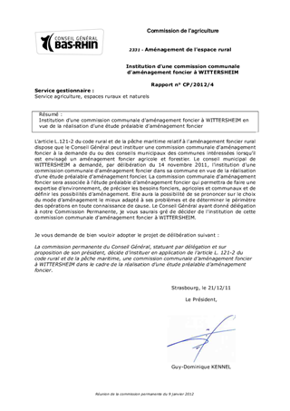 Institution d'une commission communale d'aménagement foncier à WITTERSHEIM
