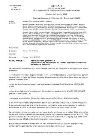 Déplacement de délégations du Conseil Général dans le cadre de mandats spéciaux
