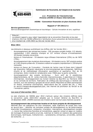 Le présent rapport a pour objet l'approbation de la convention financière et du plan d'actions 2012 de l'ADIRA afférents à l'attribution d'une subvention de fonctionnement d'un montant de 1.935.358 € au titre de l'année 2012.