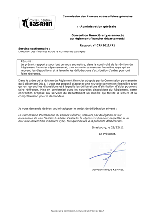Le présent rapport a pour but de vous soumettre, dans la continuité de la révision du Règlement financier départemental, une nouvelle convention financière type qui en reprend les dispositions et à laquelle les délibérations d'attribution d'aides pourront faire référence.