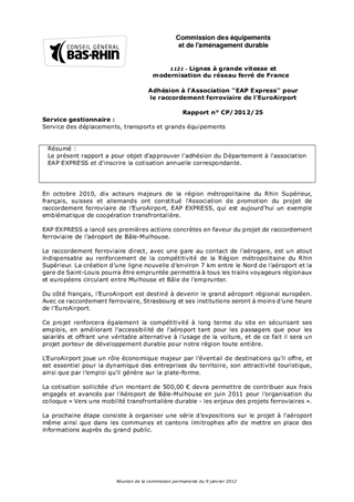Adhésion à l'Association ''EAP Express'' pour le raccordement ferroviaire de l'EuroAirport