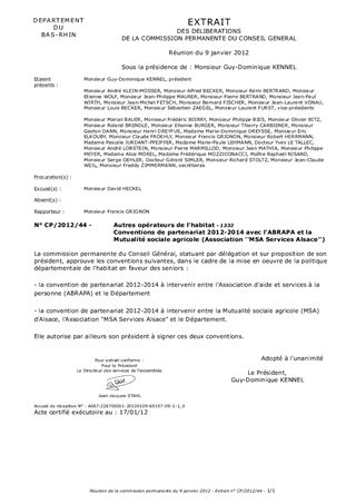 Conventions de partenariat 2012-2014 avec l'ABRAPA et la Mutualité sociale agricole (Association ''MSA Services Alsace'')