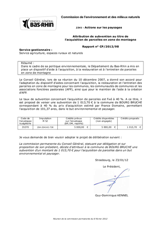 Dans le cadre de sa politique environnementale, le Département du Bas-Rhin a mis en place un dispositif d'aide à l'acquisition, à la restauration et à l'entretien de parcelles en zone de montagne