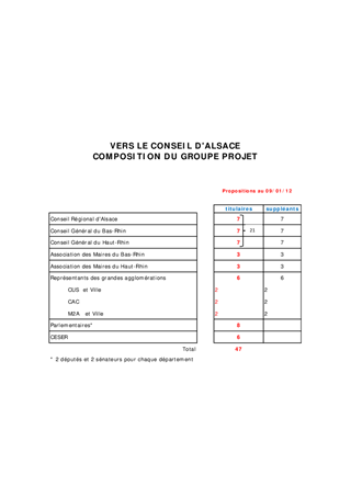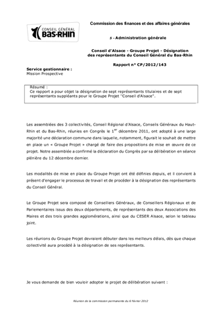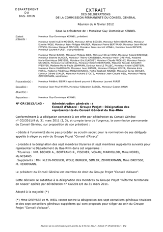Conseil d'Alsace - Groupe Projet - Désignation des représentants du Conseil Général du Bas-Rhin