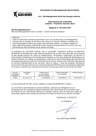 Subventions de centralité urbaine - Première tranche 2012