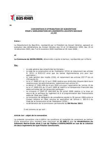 Le présent rapport concerne la demande d'aide financière présentée par la commune de GOERLINGEN concernant la création de deux logements locatifs sociaux communaux dans le cadre du dispositif de PALULOS communale.