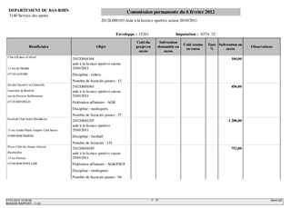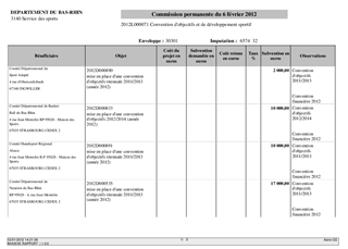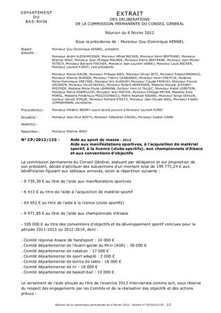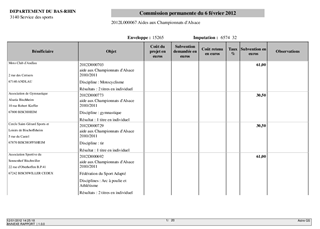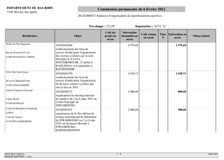 Aide aux manifestations sportives, à l'acquisition de matériel sportif, à la licence (clubs sportifs), aux championnats d'Alsace et aux conventions d'objectifs