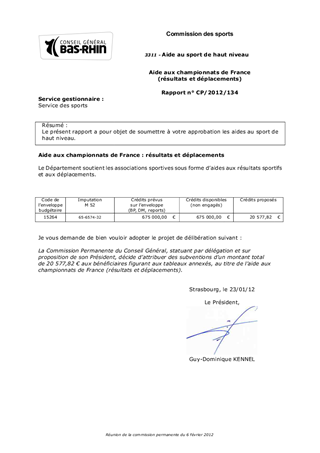 Le présent rapport a pour objet de soumettre à votre approbation les aides au sport de haut niveau.
