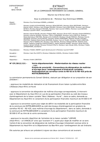 Projets de proximité - Conventions de désignation de maîtrise d'ouvrage pour l'aménagement d'itinéraires cyclables - Aménagement du carrefour entre la RD 62 et la RD 425 près de MITTELBERGHEIM