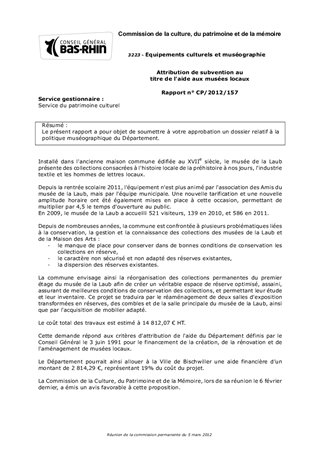 Le présent rapport a pour objet de soumettre à votre approbation un dossier relatif à la politique muséographique du Département.