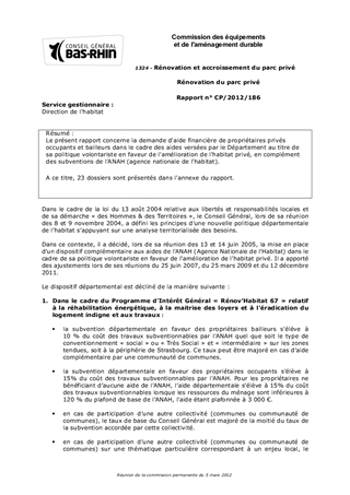 Le présent rapport concerne la demande d'aide financière de propriétaires privés occupants et bailleurs dans le cadre des aides versées par le Département au titre de sa politique volontariste en faveur de l'amélioration de l'habitat privé, en complément des subventions de l'ANAH (agence nationale de l'habitat). A ce titre, 23 dossiers sont présentés dans l'annexe du rapport.