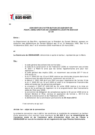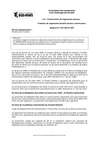 Le présent rapport concerne la demande d'aide financière présentée par la commune de ZEHNACKER concernant la création de six logements locatifs sociaux communaux dans le cadre du dispositif de PALULOS communale.