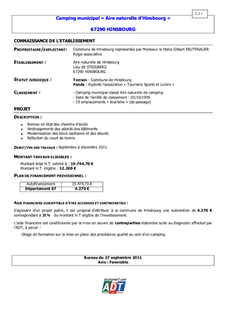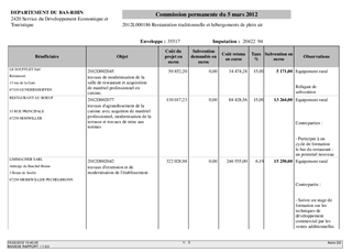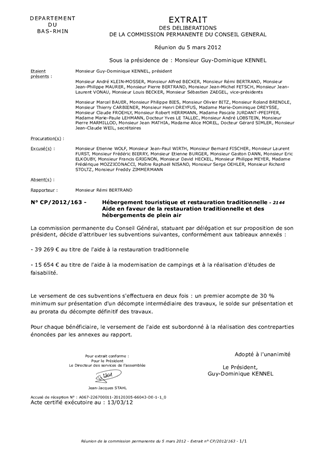 Le présent rapport a pour objet de soumettre à l'approbation de la Commission Permanente du Conseil Général diverses propositions d'aides départementales en faveur de l'hôtellerie de plein-air et de la restauration traditionnelle.