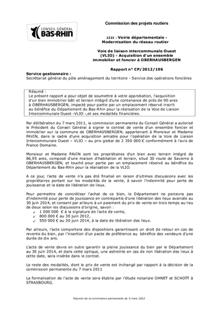 Le présent rapport a pour objet de soumettre à votre approbation, l'acquisition d'un bien immobilier bâti et terrain intégré d'une contenance de près de 90 ares à OBERHAUSBERGEN, impacté pour partie par un emplacement réservé inscrit au bénéfice du Département du Bas-Rhin pour la réalisation de la Voie de Liaison Intercommunale Ouest -VLIO -,et ses modalités financières.