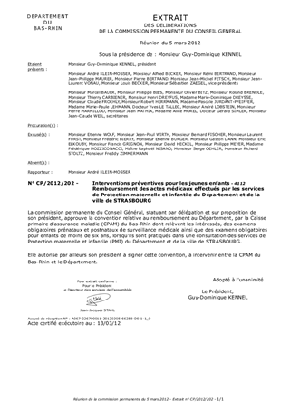 Remboursement des actes médicaux effectués par les services de Protection maternelle et infantile du Département et de la ville de STRASBOURG